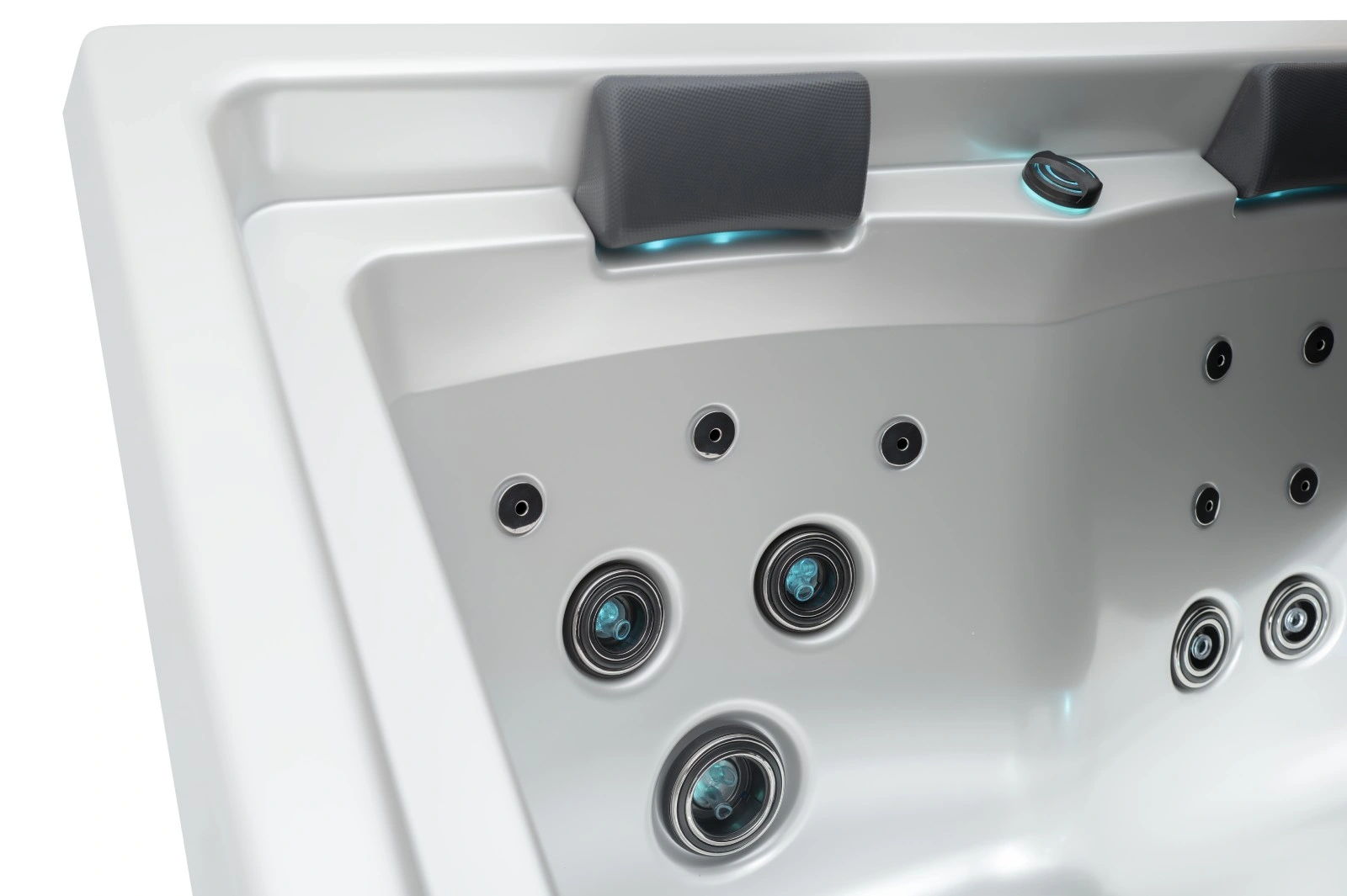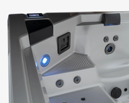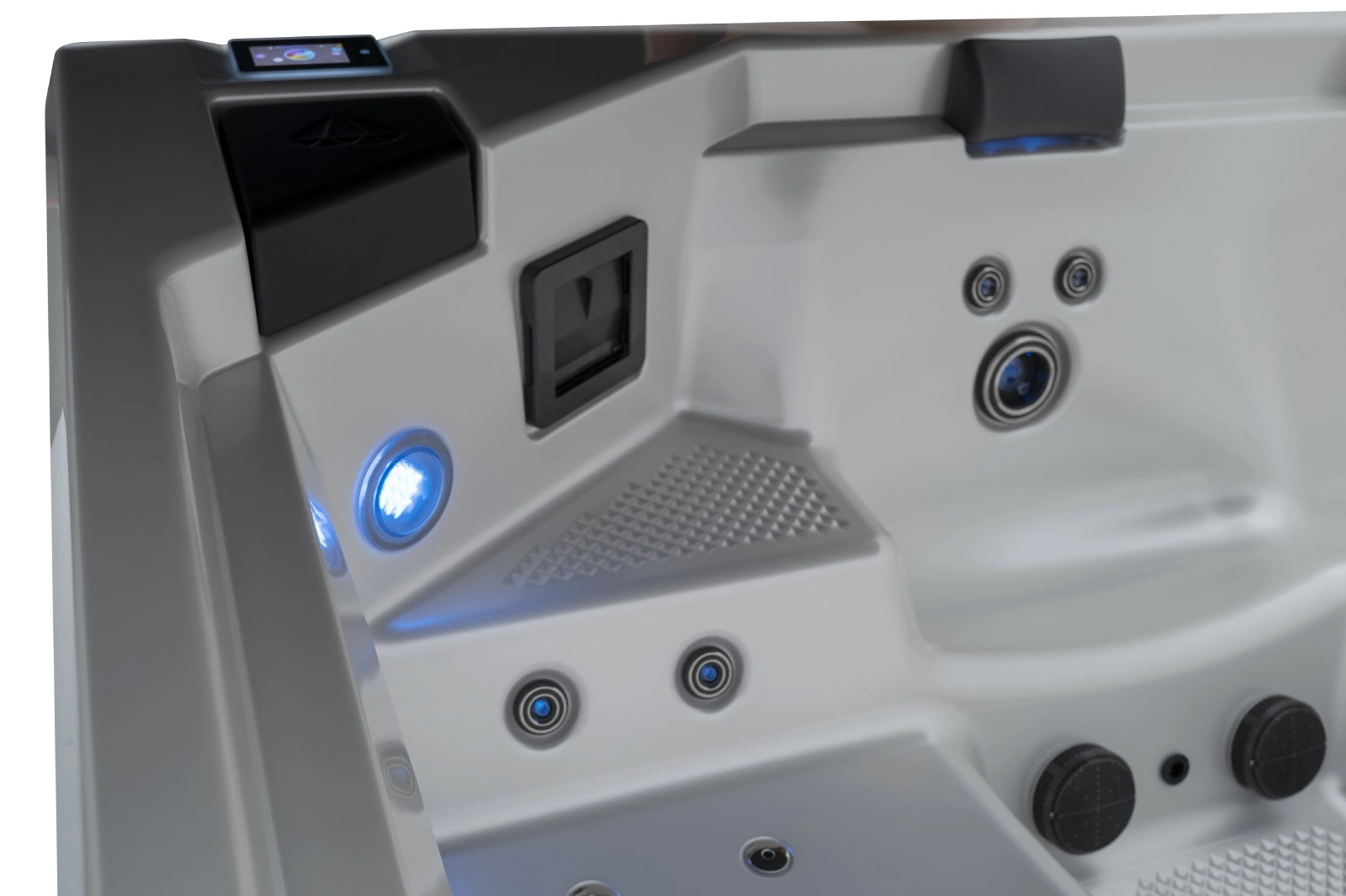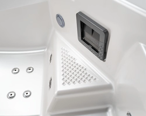 Vårt spa är utformat för att kombinera komfort, säkerhet och avancerad teknik. Med smart styrning kan du enkelt anpassa din upplevelse. Hydroterapistrålar ger djup avslappning och hälsofördelar, medan kromoterapibelysning skapar en lugnande atmosfär. Den halkfria ytan säkerställer maximal säkerhet så att du fullt ut kan njuta av dina stunder av vila och välbefinnande.