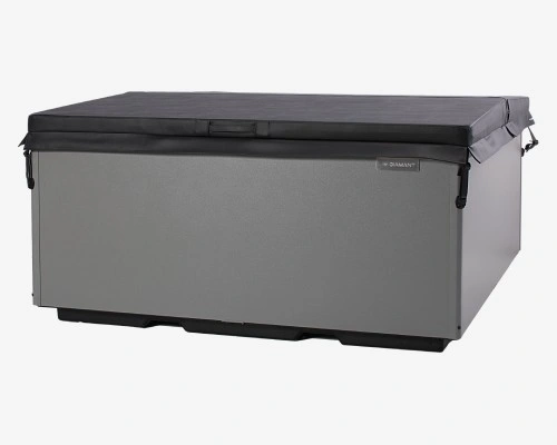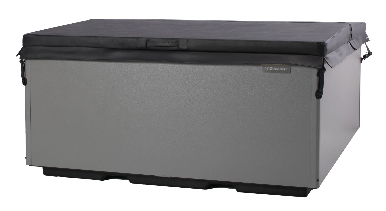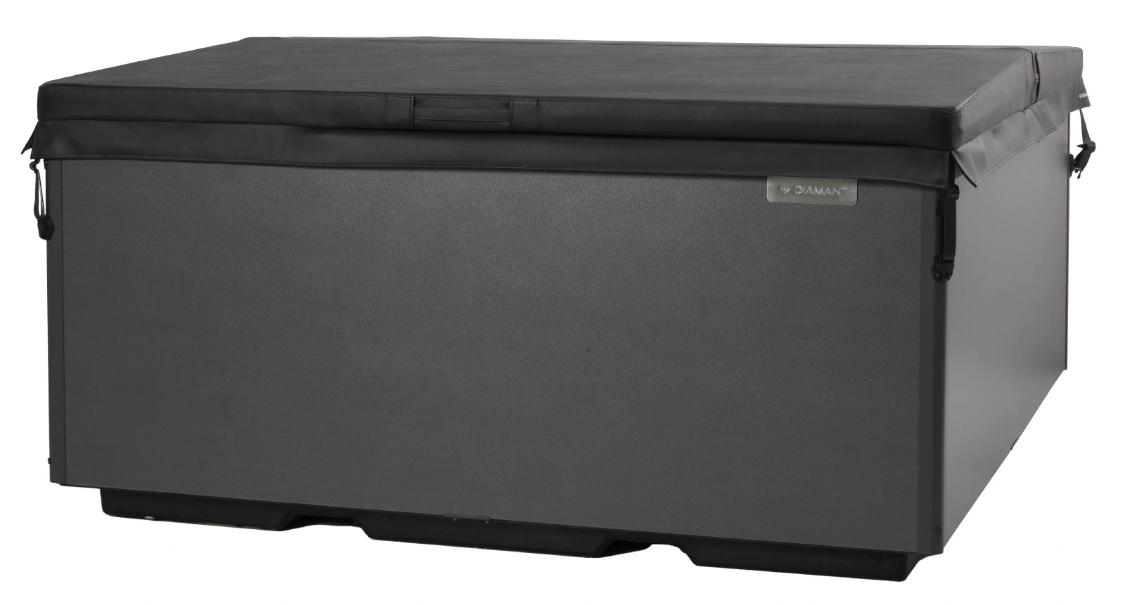 Det termiska locket, tillverkat av exklusivt svart konstläder, ger utmärkt värmeisolering och skydd, vilket säkerställer energieffektivitet och en elegant finish för ditt spabad.